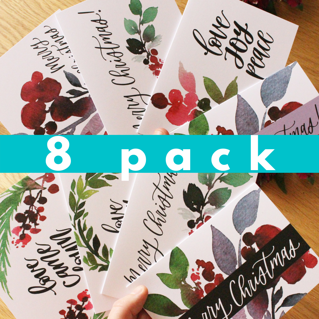 8 x WATERCOLOUR CHRISTMAS CARD (PACK 1 + 2)